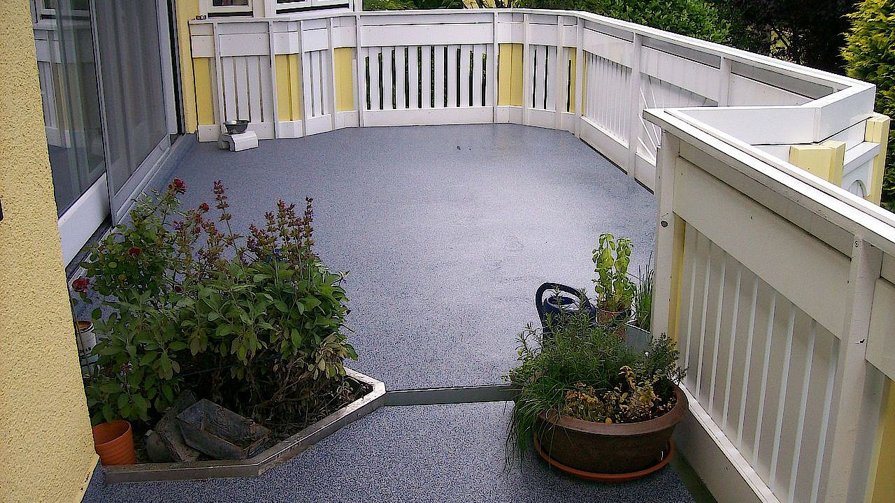 SW-Colorquarzspachtelung eignet sich ideal zur Sanierung von undichten Balkonen und Außentreppen.